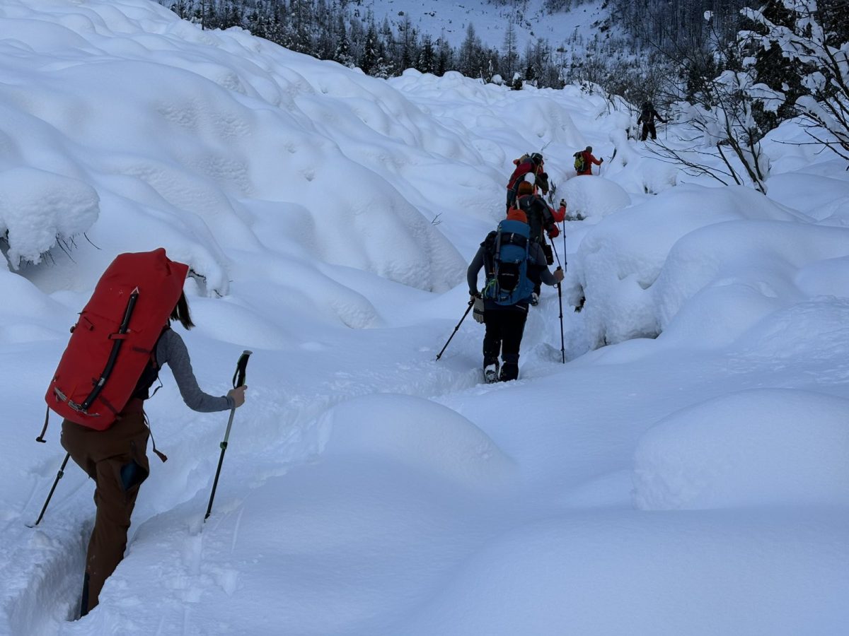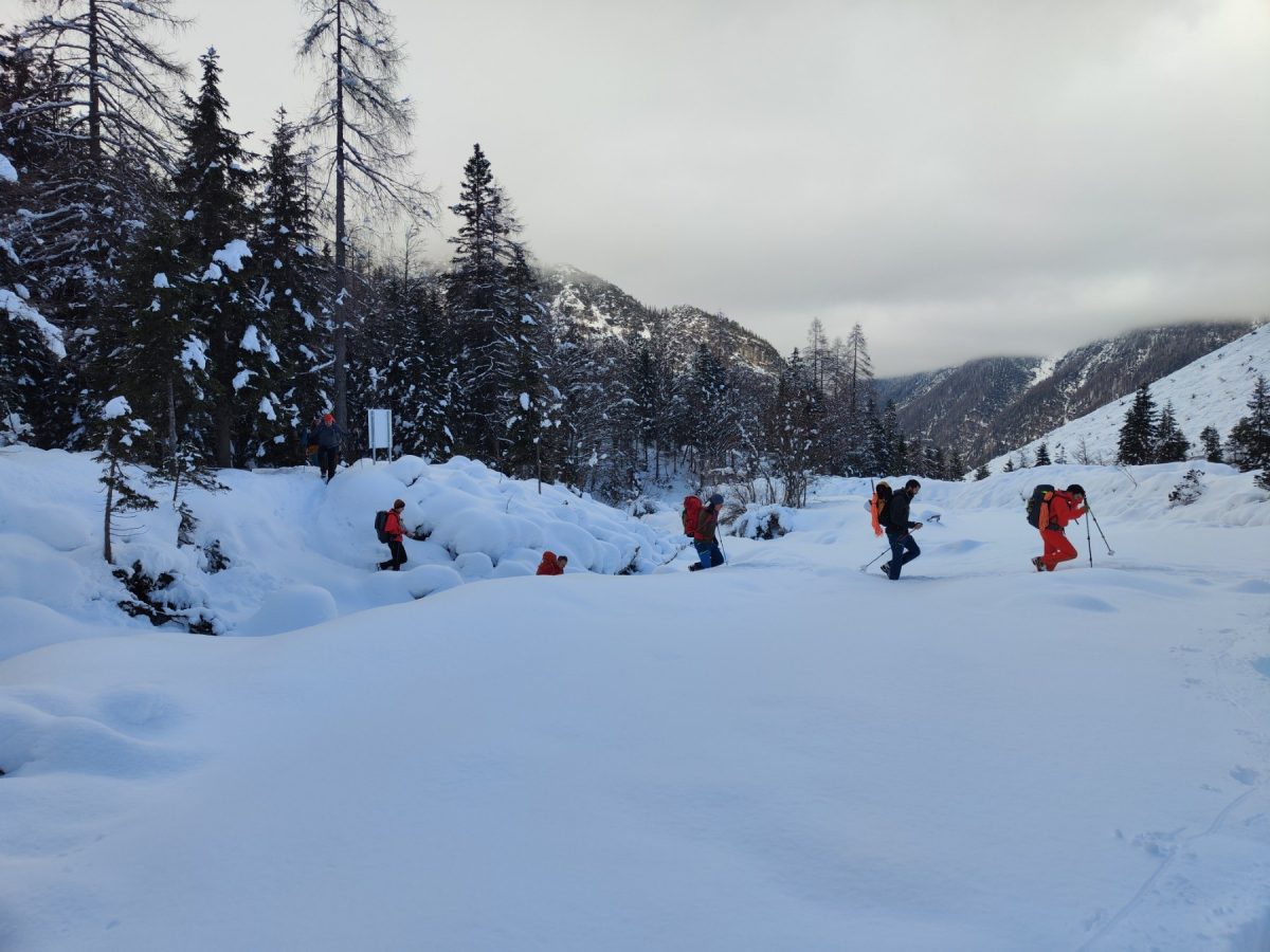 Putem nisu propuštene znamenitosti poput Ruske kapelice, a laganim tempom stiglo se do doma, nakon čega se nastavilo u smjeru sjeverne stijene Prisojnika, uz zadržavanje u niskom i lavinski sigurnom području. Snježni pokrivač bio je dubok između 40 i 70 cm, što je značajno otežavalo kretanje, ali je sudionicima pružilo realan uvid u moguće zimske uvjete na terenu.