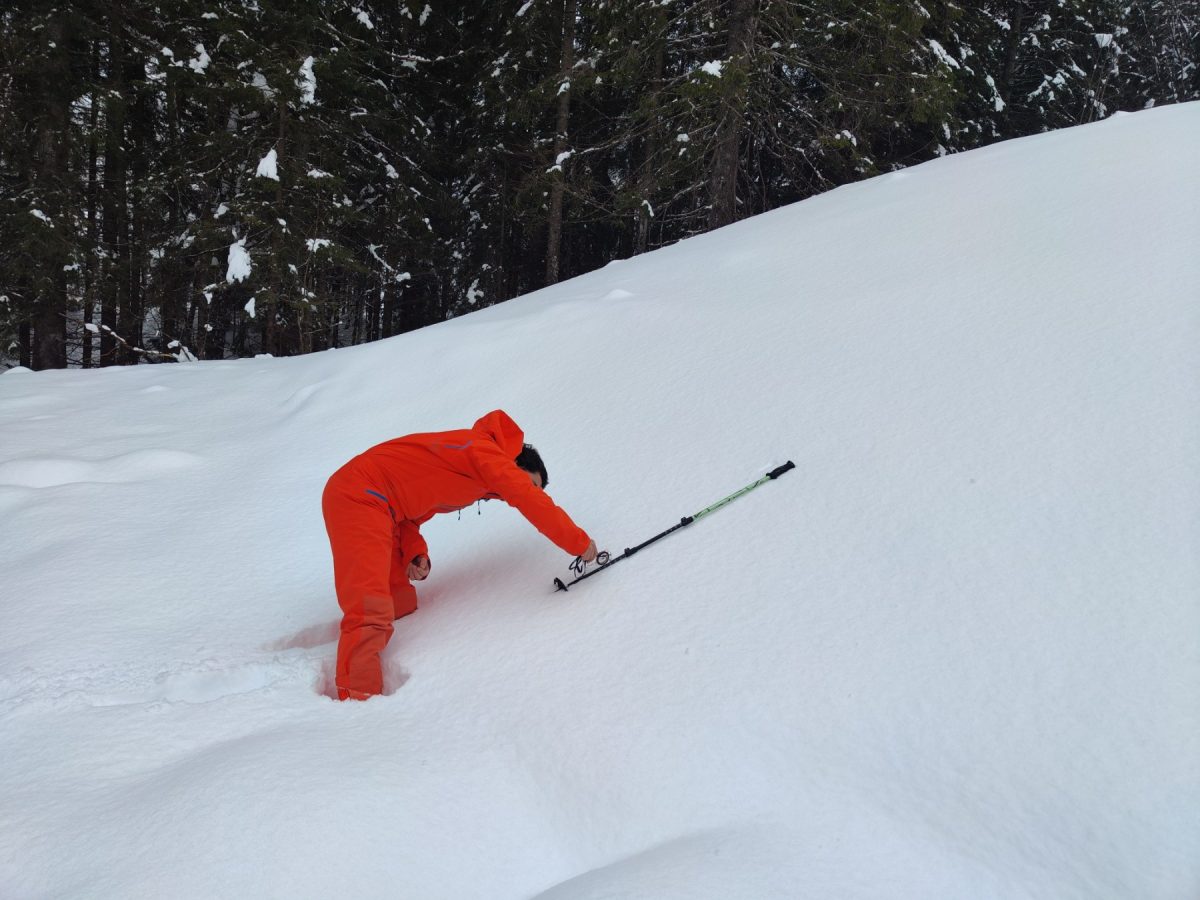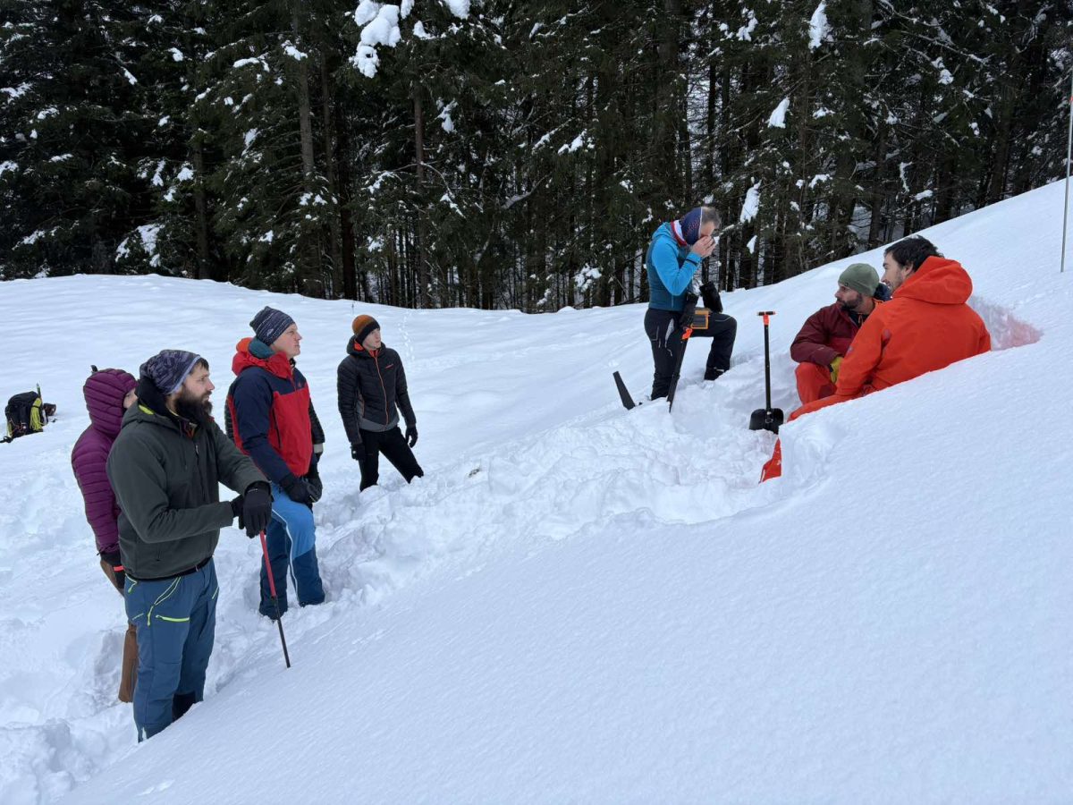 U nedjelju, 1. veljače, nakon obilnog i ukusnog doručka, neposredno ispod Koče na Gozdu održana je prezentacija presjeka stabilnosti snježnog pokrivača. Sudionici su učili prepoznavati slojeve snijega, detektirati potencijalno nestabilne slojeve te su proveli kompresijski test i test tvrdoće snijega.